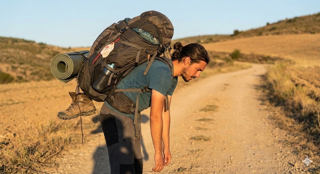 El «por si acaso» es el peor enemigo de la espalda del peregrino o peregrina. Llenar la mochila con ropa para un mes, tres libros y utensilios que jamás usarás es uno de los errores al hacer el Camino de Santiago que más factura pasa. Una mochila excesiva te agotará rápidamente y aumentará el riesgo de lesiones en rodillas y hombros.