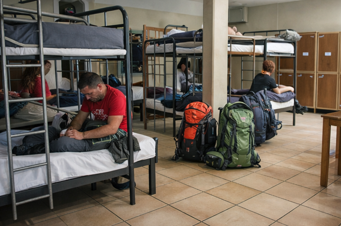 Es la opción más popular. Buscas un equilibrio entre precio y ciertas comodidades que a veces los albergues municipales no ofrecen (como sábanas desechables, lavadoras más accesibles o menos masificación).